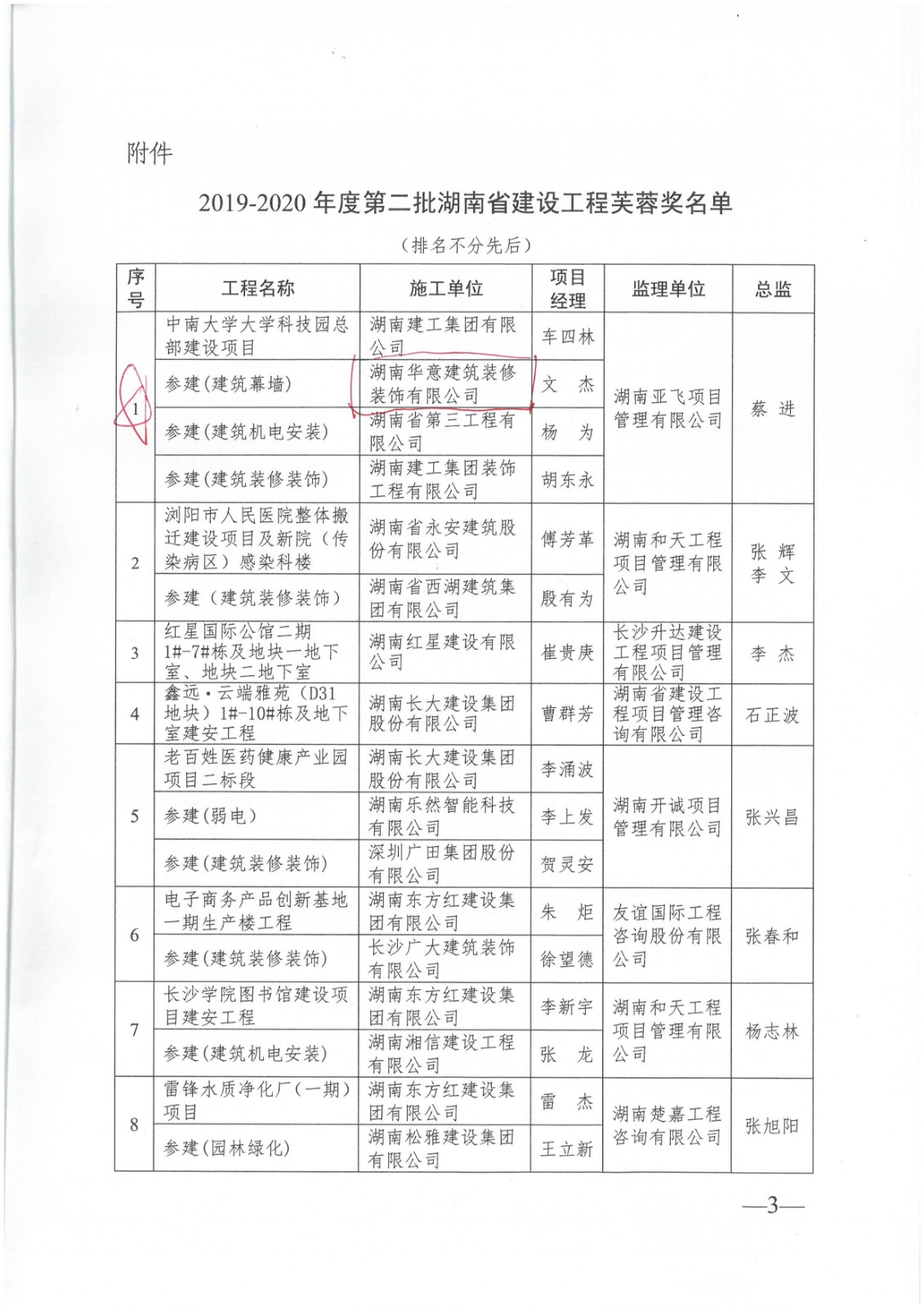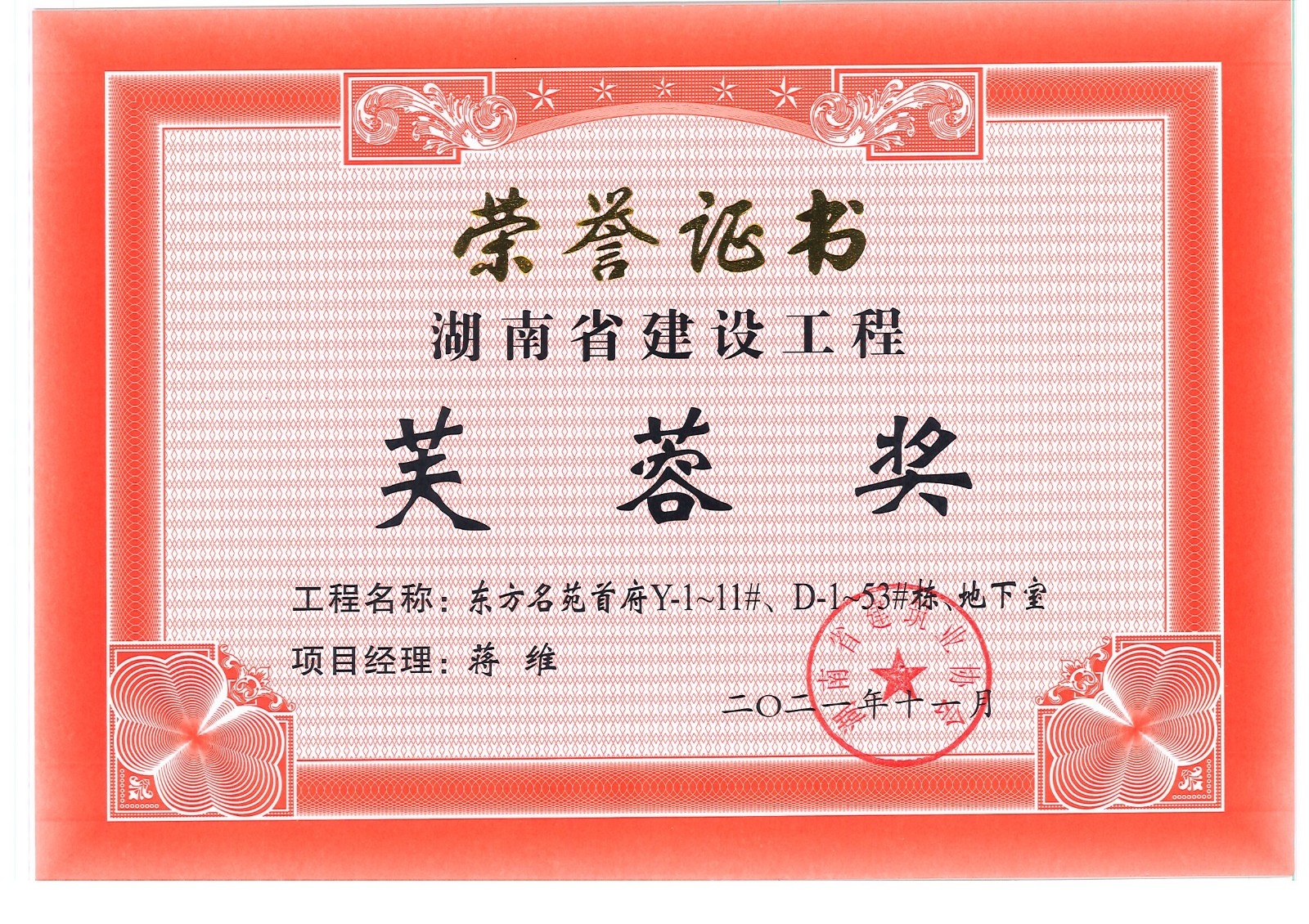 芙蓉獎---中南大學大學科技園總部建設項目、東方名苑首府Y-1~11#、D-1~53#棟、地下室、天易示范區文體公園ABCDE區主體工程及景觀工程、岳陽現代工業制造園(3#棟)(浮空器產品總裝、試驗廠房)