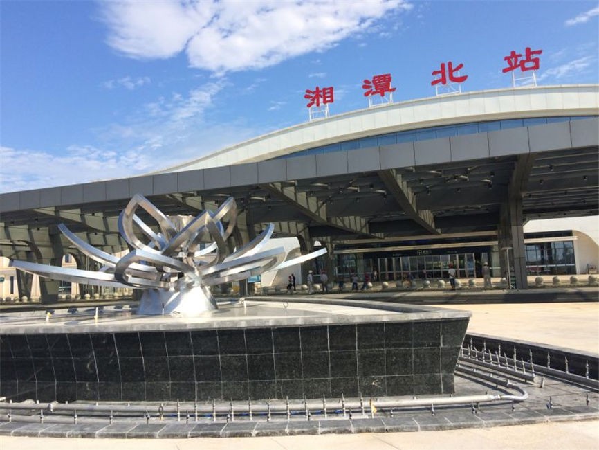 湘潭北站站前綜合樞紐總占地面積約9.3公頃,規(guī)劃建設(shè)站前廣場(chǎng)、公交戰(zhàn)場(chǎng)、出租車場(chǎng)、社會(huì)停車場(chǎng)、長(zhǎng)途客運(yùn)站、一級(jí)地下商業(yè)空間等。以蓮花、荷葉為主題的園林式廣場(chǎng),展示出一個(gè)現(xiàn)代、新穎、科技相結(jié)合“蓮城”文化的“綜合性、主體式、零換乘”功能廣場(chǎng)。