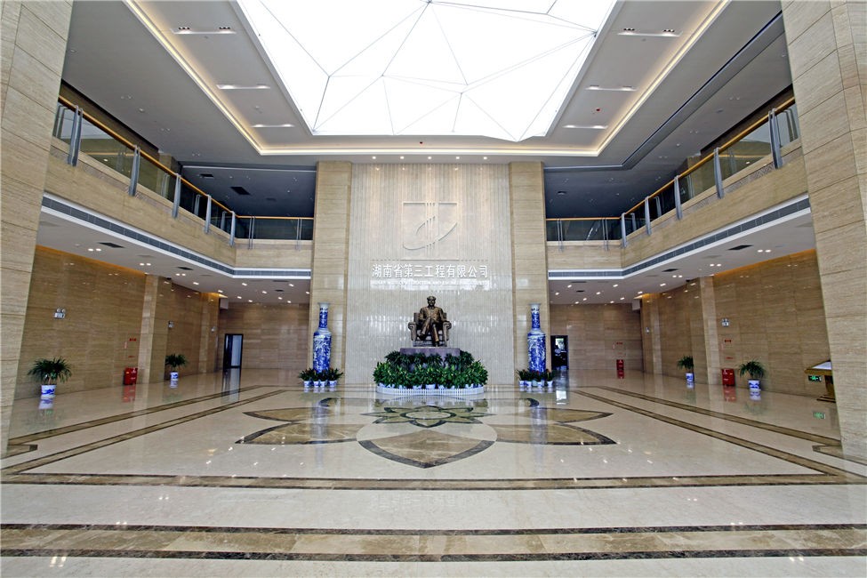三建興城室內外裝飾設計工程:“清新、自然、簡約、優雅”這是室內環境所表現的概念,在空間規劃中強調了人文氛圍,體現科技向上,以一個充滿自然氣息的辦公空間,結合大自然的元素使空間完美共享且不喪失基本的辦公功能。此工程榮獲“魯班獎”、“湖南省優質工程”、“全國建筑工程裝飾獎”、“安全質量標準化示范工地”。